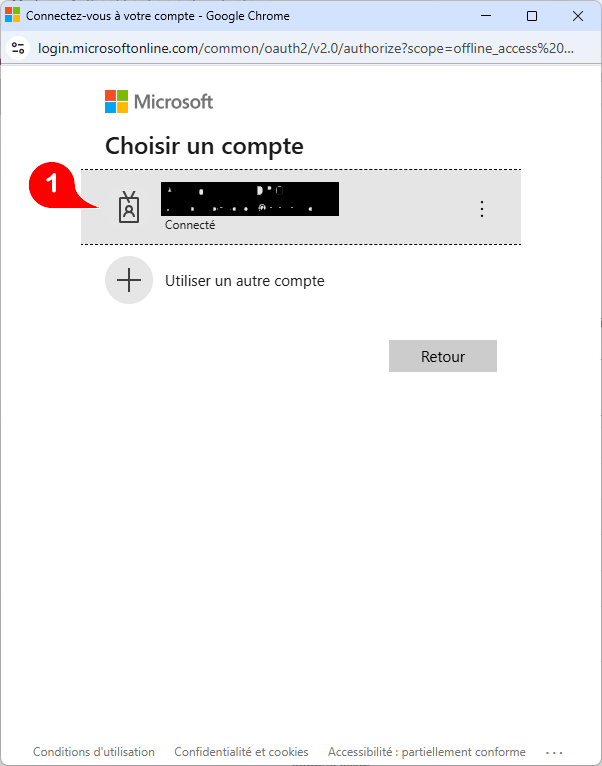 Une fenêtre d’authentification Microsoft s’ouvre et vous invite à sélectionner un compte.