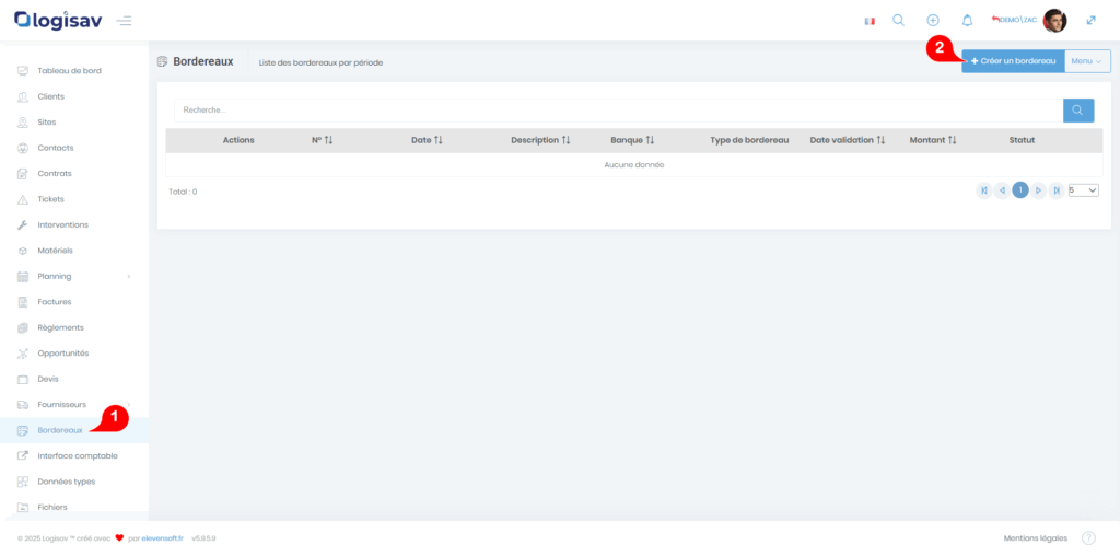 Un bordereau peut-être créé à partir à partir de la liste des bordereaux.
