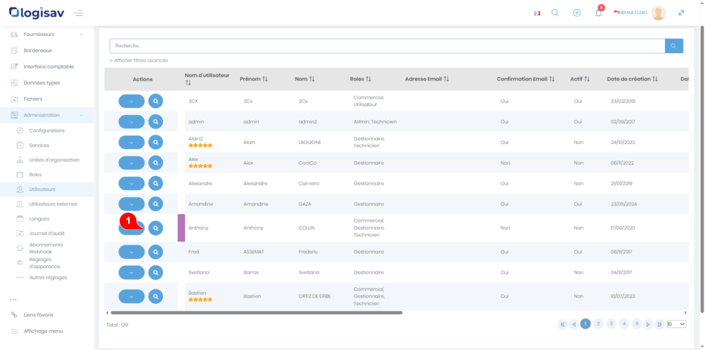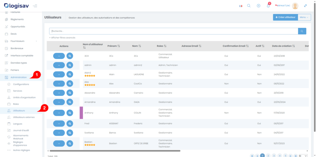 Pour gérer la double authentification de vos utilisateurs, cliquez sur le menu « Administration », lorsque que le menu défilant s’affiche, cliquez sur « Utilisateurs ».