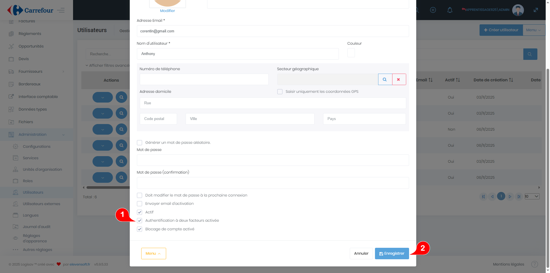 Enfin, cochez la case d’Authentification à deux facteurs, puis pensez à enregistrer.