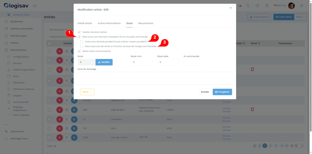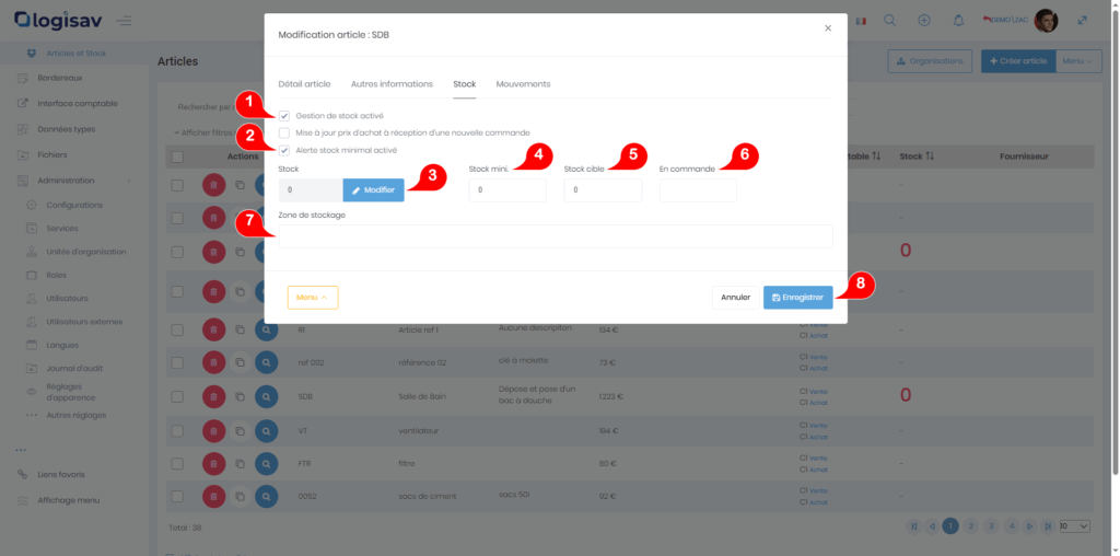 Avec Logisav vous avez la possibilité de gérer et modifier vos articles.