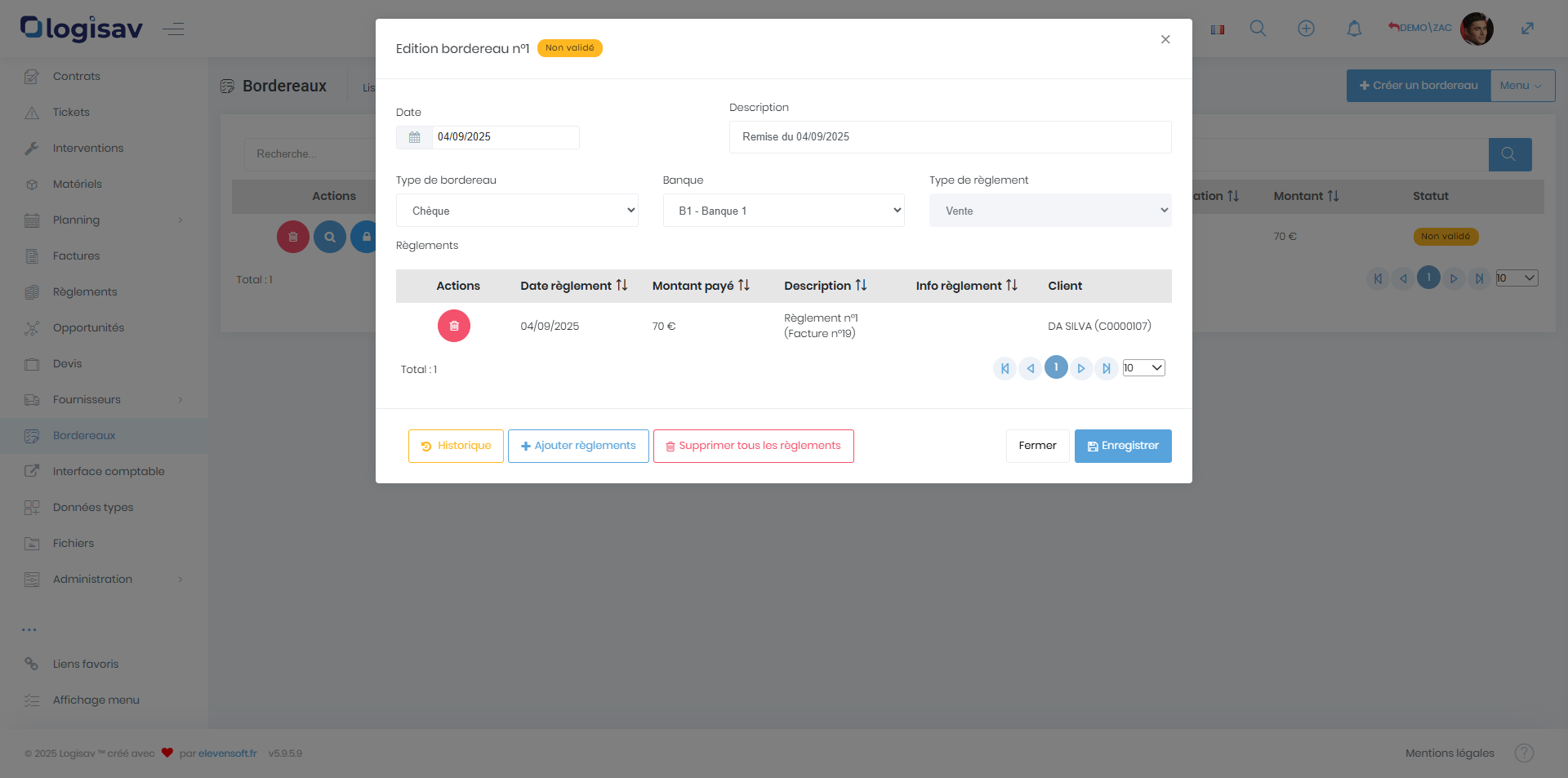Avec Logisav vous avez la possibilité de gérer et modifier vos bordereaux.